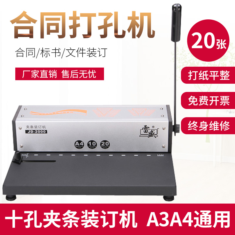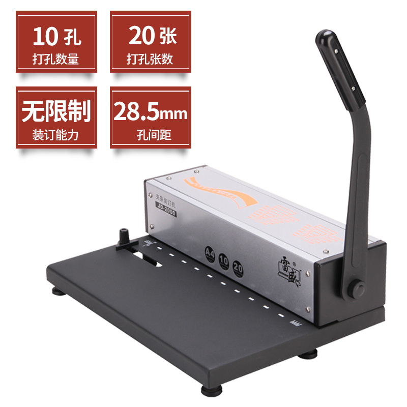 10 Hole ClampIng Bar Binding Machine Leisheng JD-2000 CrimpIng Edge Binding Clamping Bar Punching Machine Contract Tender Document File Binding Metal Body A3A4 Universal Unlimited Binding Machine