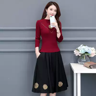 New 2021 autumn and winter lady fake two-piece suit women's 40-year-old mother middle-aged Western style dress