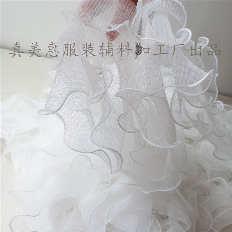 11 cm Wide Diy White Mesh Yarn Triple Curl Wave Press Pleated Web Yarn Lace Accessories