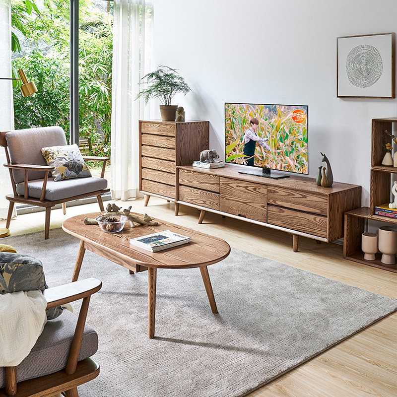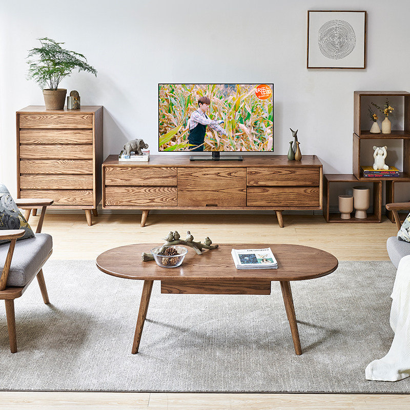Solid wood tea table oval Nordic style small family tea machine minimalist small table white wax wood tea table living room Home-Taobao