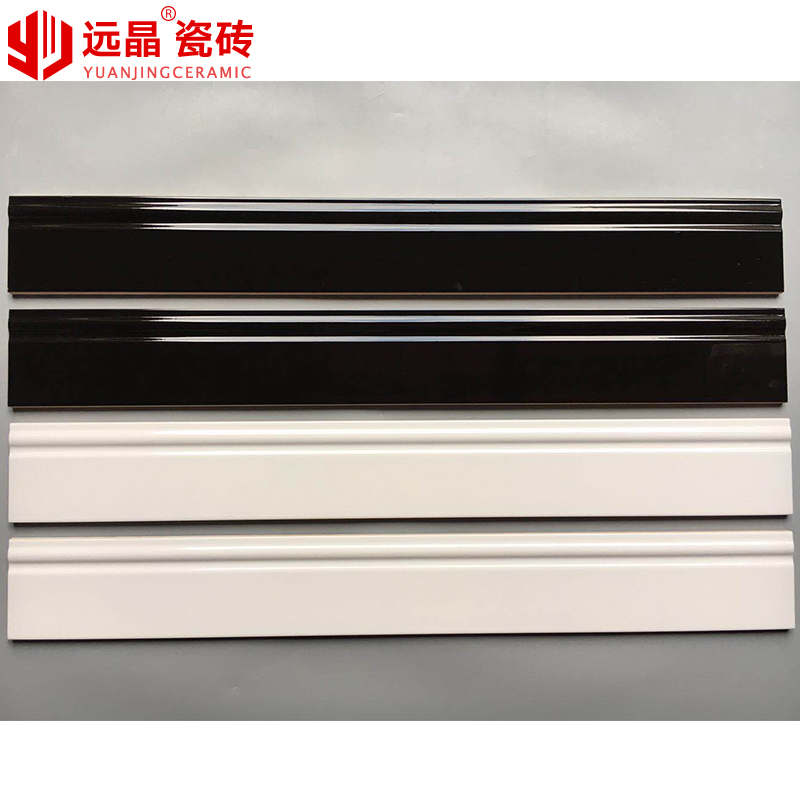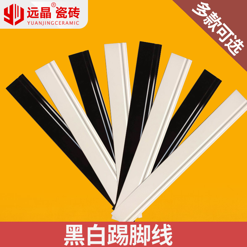 Foshan 100x800 living room bedroom floor footline strand line border line wave conductor black and white skirting board tile