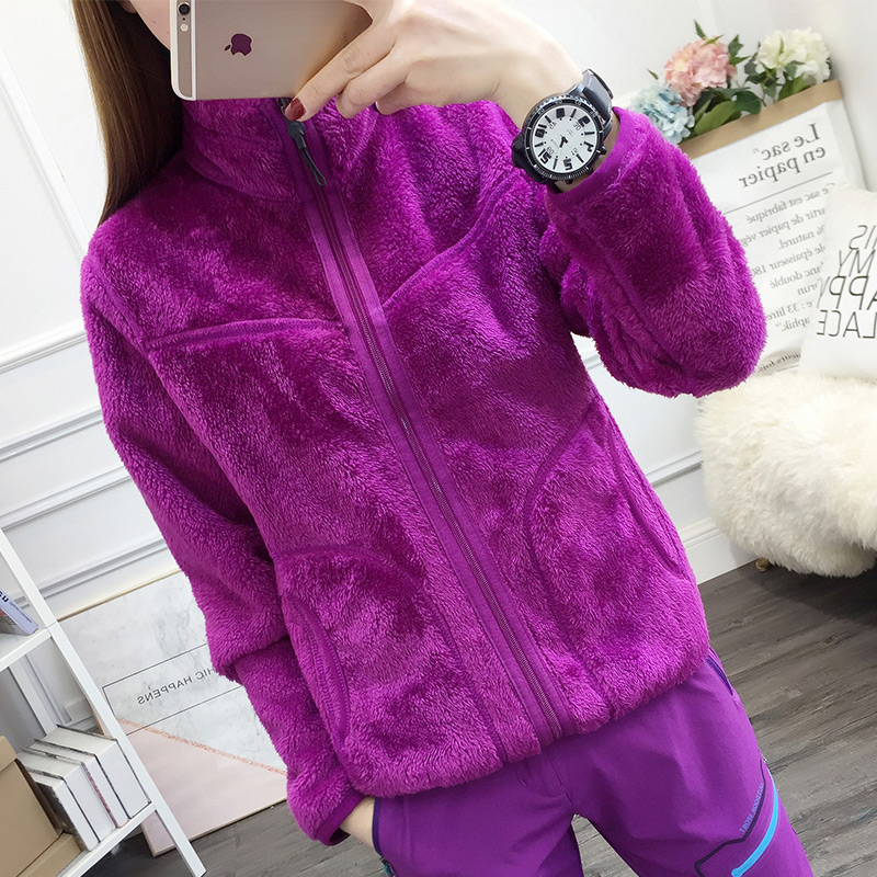 Outdoor autumn and winter fleece clothes men and women thickened warm long-haired fleece jacket bottom two sides wear mountaineering clothes cardigan