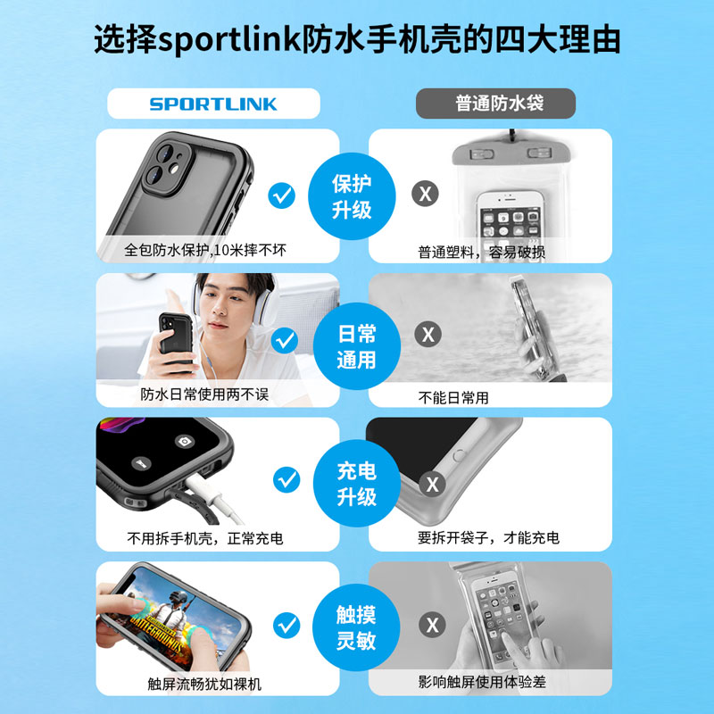 SPORTLINK is suitable for Apple 5S mobile phone case waterproof iPhoneSE diving case 5 all-inclusive camera silicone hard drop-proof dust-proof three-proof swimming spa delivery touch screen