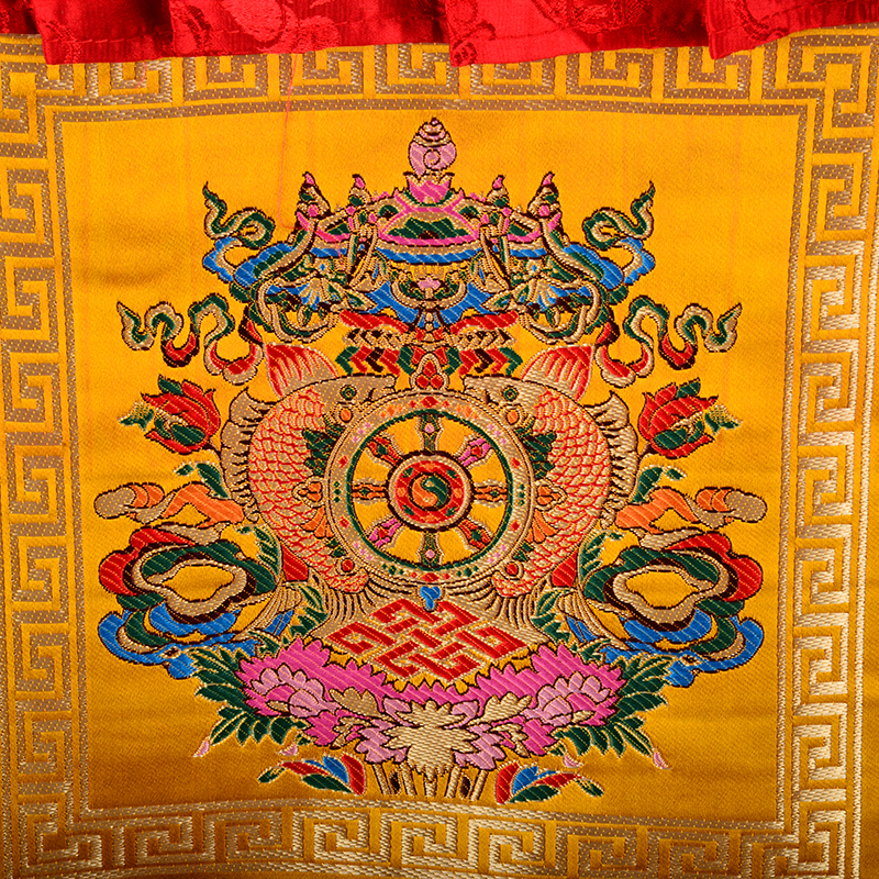 Tibetan square curtain Tibetan national style decorative hand embroidery eight auspicious thickened partition curtain yellow grid