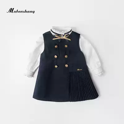 Mumoto Shang girls autumn and winter clothing set foreign school 2021 new one-year-old female baby academic style two-piece fashion