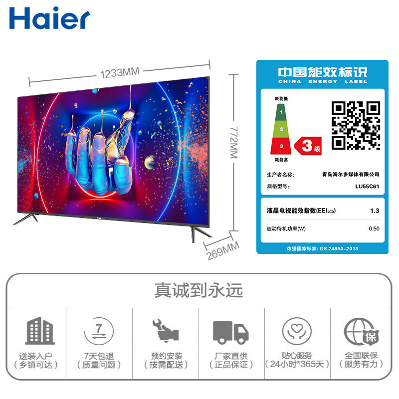 Haier Haier LU55C61 55-inch full screen 4K intelligent voice LCD flat panel TV 16G