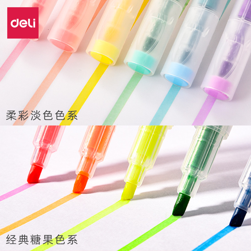 Able flexo fluorescent pen soft light marker pen light color 6 color tasteless sugar fruit color sloped head color sketchbook pen junior high school high school students with endorsement notes to review thick and colorful handbooks pen-Taobao