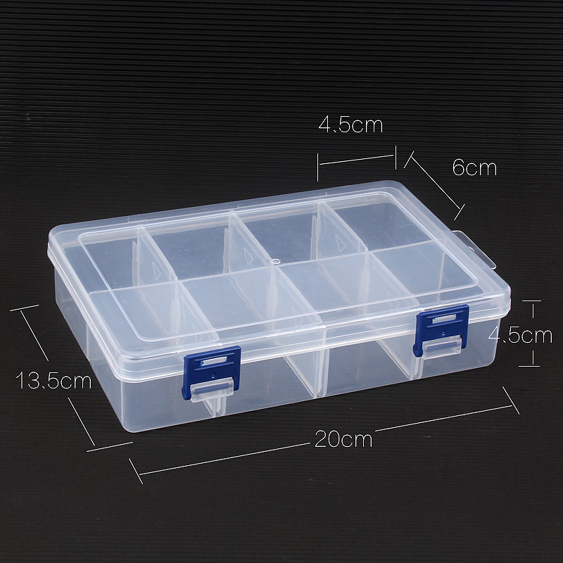 Large 8-compartment transparent detachable double-caridium plastic long eight-compartment storage buttons mail beaded marbles spare parts storage box