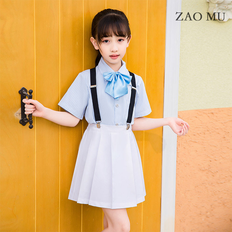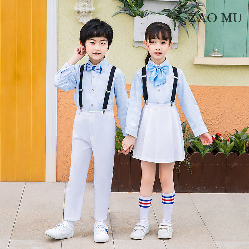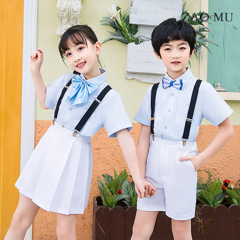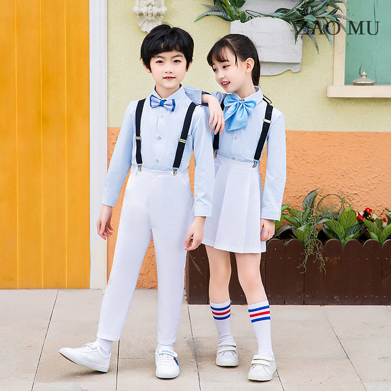 Sky Blue Striped Short Sleeve Shirt White Long Pants Black Cuddles Blue White Collar Knots Blue Striped Long Sleeves Shirt White Long Pants Black Cuddling Bag Blue White Collar Tie Sky Blue Striped Short Sleeve Shirt White