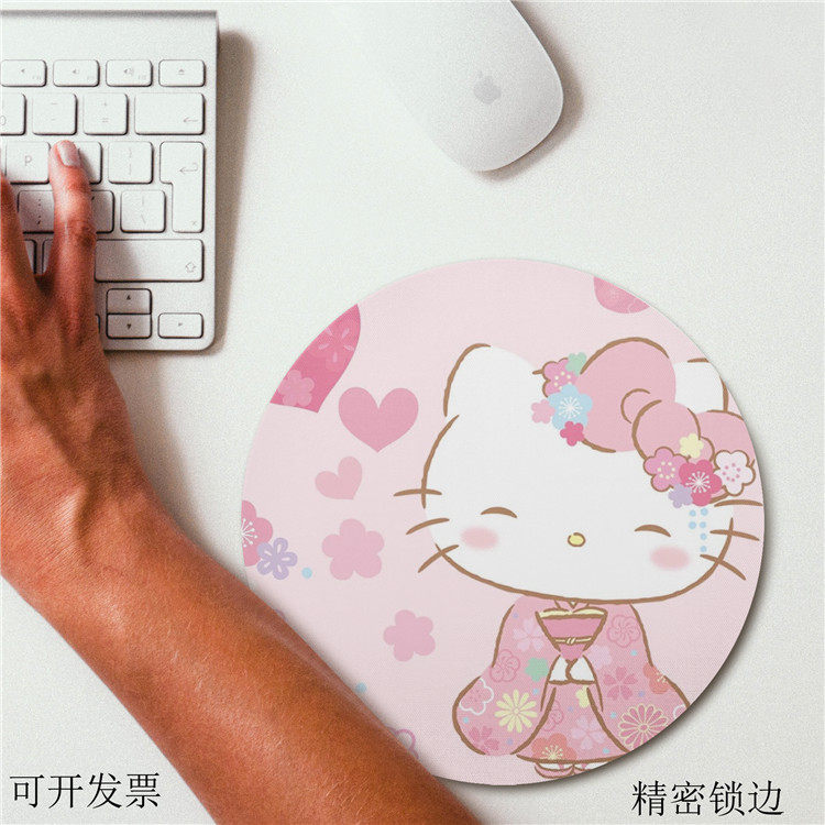 Round Mouse Pad Cute Girl Kitty Cat Small Portable Convenient Laptop Mouse Pad