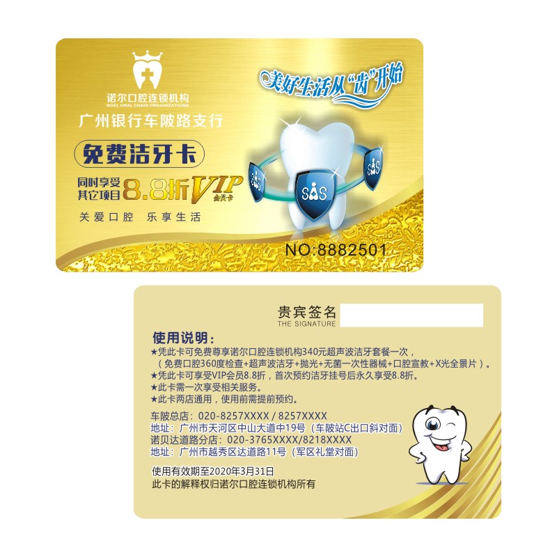 Dental Hospital Outpatient Clinic Members VIP Card Customized Oral Cleaning Dental Clinic Preferential Experience Card Making