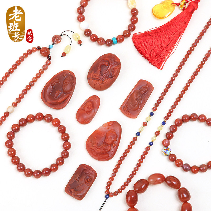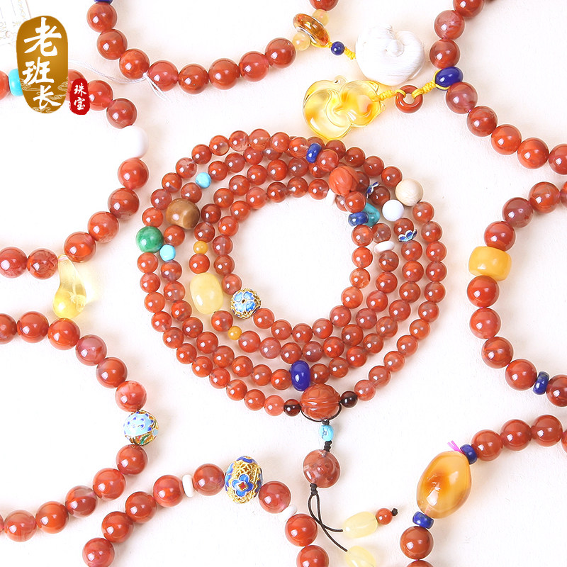 Old squad leader natural southern red agate live broadcast male and female models 108 bead bracelet accessories Baoshan persimmon red round bracelet