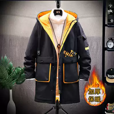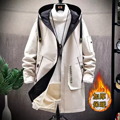 2021 autumn and winter new medium and long version hooded jacket men Korean version plus velvet padded men's woolen sweater coat tide