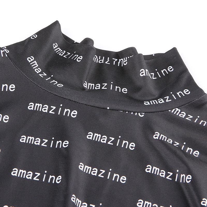 H home letter printing stand collar long sleeve tight European and American ins jumpsuit Female sense base top Casual T-shirt spring