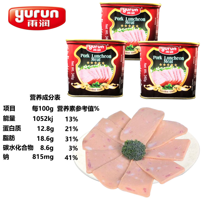Yurun luncheon meat 340g whole box 24 cans of pancakes Jiang Hu Dong Bai Ding barbecue excellent luncheon meat outdoor