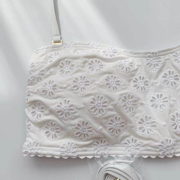 Triumph home Europe and the United States KS2019 new white high waist sexy bikini heavy embroidery high-end women's two-piece swimsuit