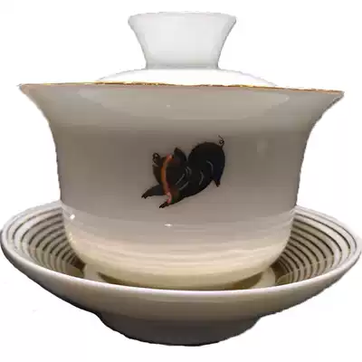 Taetea Tea Set Zodiac Fortune Gaiwan Teacup White Jade Porcelain Thin tire Bronzing Kung Fu three-cai Gaiwan Taetea Workshop