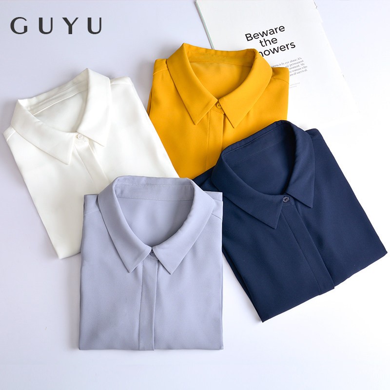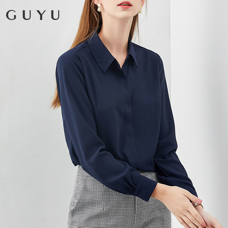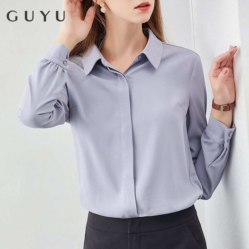 2022 spring new temperament chiffon shirt women's long-sleeved high-end professional dress white shirt haze blue top