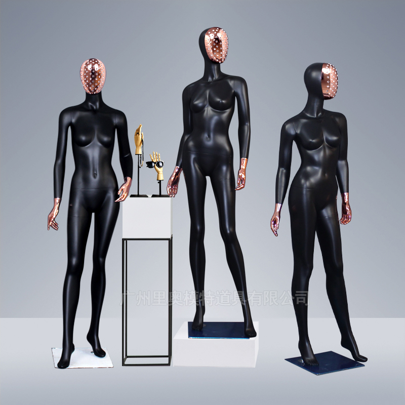 European And European Inlaid Drilling Advanced Clothing Model Rose Gold Face Matt Black Woman Full Body Model Props Show Women's Clothing Store