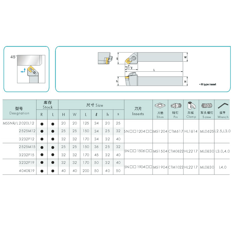 MSSNR1616H12 (positive knife) MSSNR2020K12 (positive knife) MSSNR2525M12 (positive knife) MSSNR3232P15