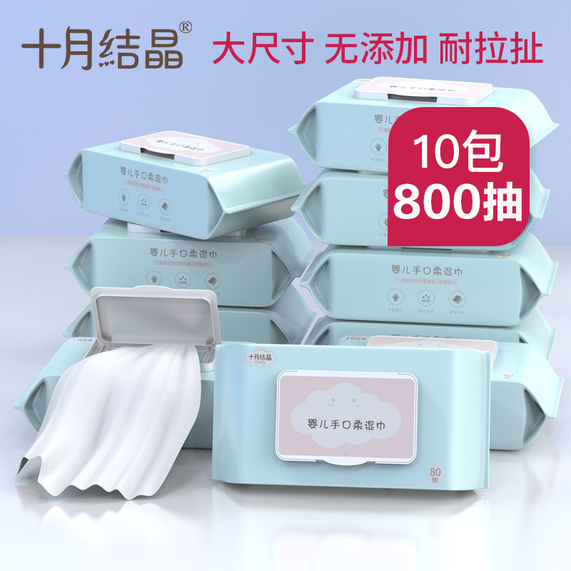 October knot crystal baby wet tissue newborn hand mouth special Fart Baby Baby Baby Baby wet towel 80 draw 10 bags