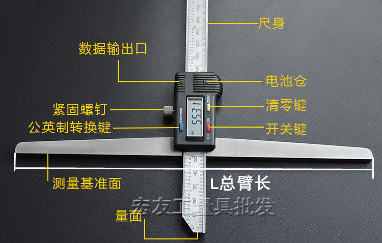 Tianmu widened base electronic digital display depth ruler 0-200*200 250mm long base vernier depth caliper