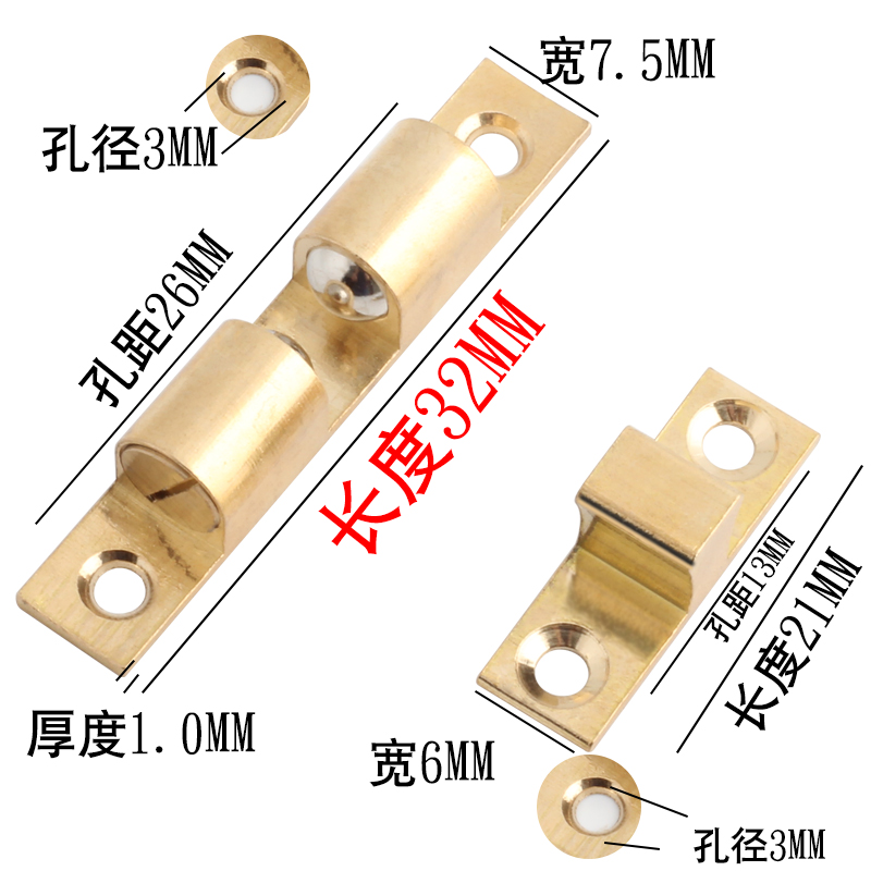 Cabinet door copper bumper Beads Drawers Snap closet door Card Buckle Lock Karts Cammed Red Wood Cabinet Brass Switch 32mm