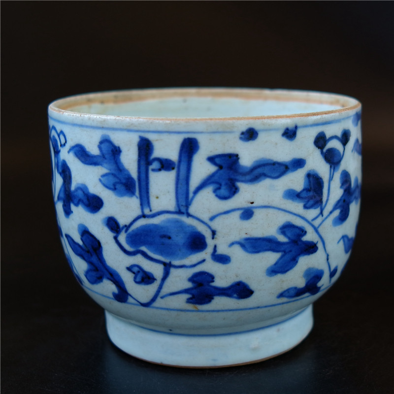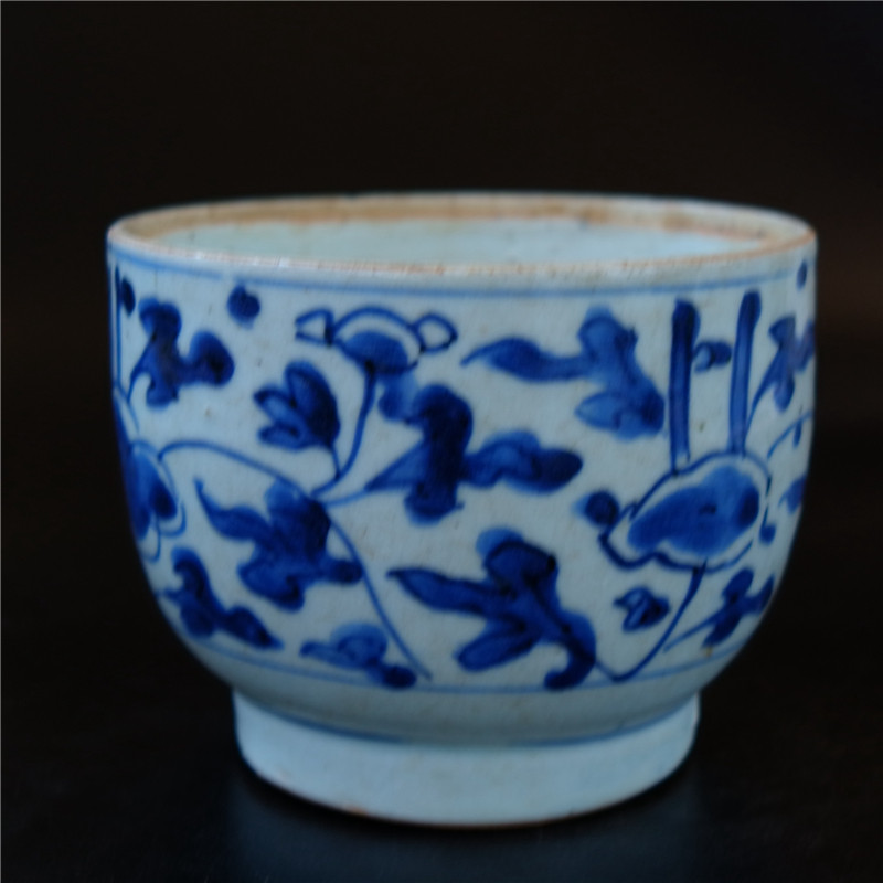 Su=shadow Ming and Qing transition period blue and white porcelain cylinder Full-product porcelain Porcelain literati porcelain art collection