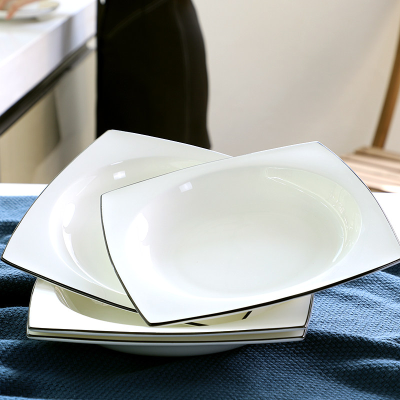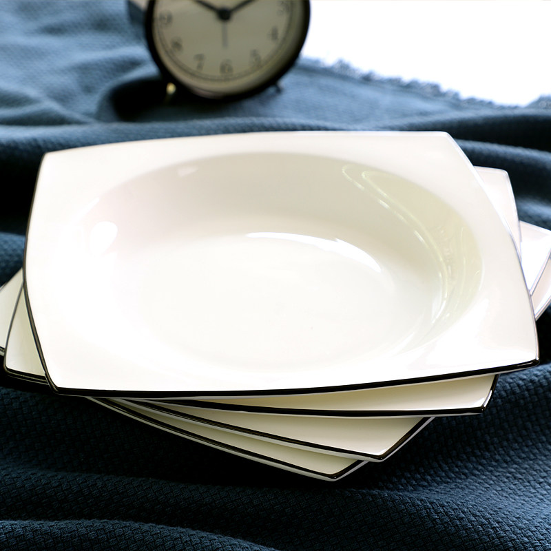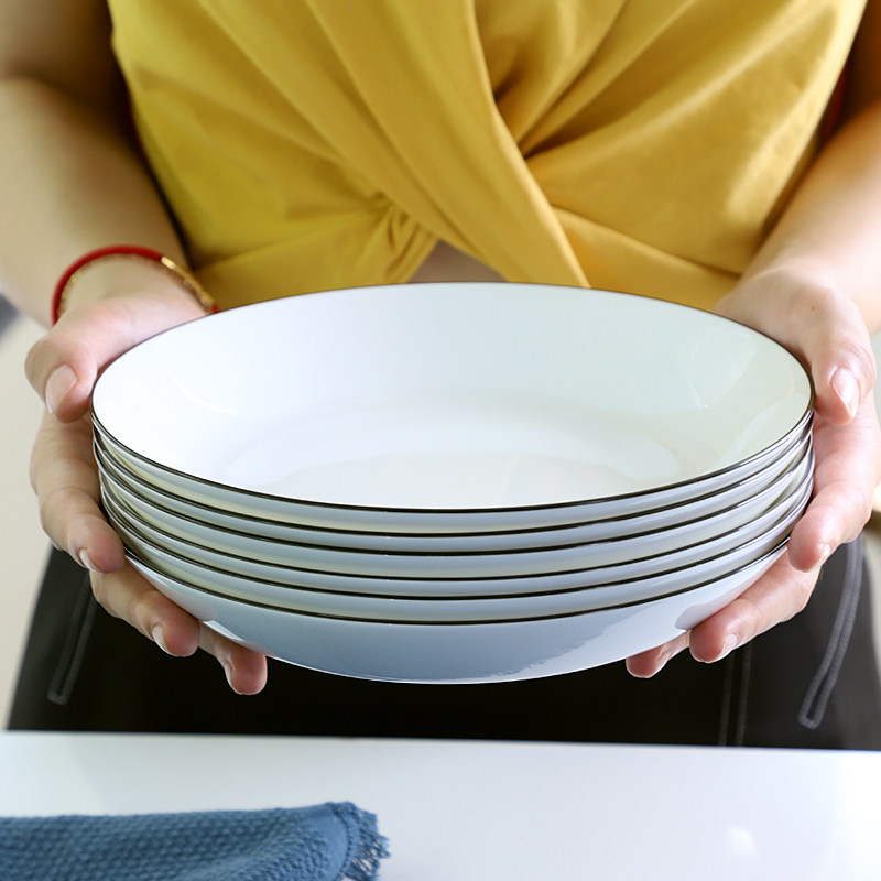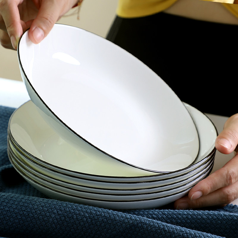 Plate package combined dishes household in dishes creative Western meal black line ceramic plate Nordic tableware Japanese