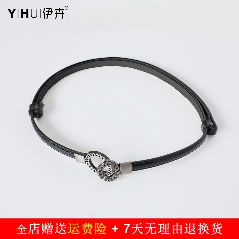 Minimalist 100 lap belt lady fine decoration Fashion Korean version retro black narrow slim leather strap with dress shirt