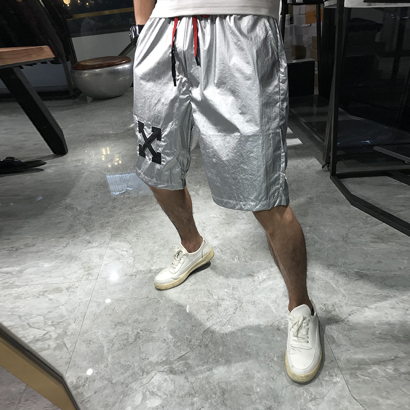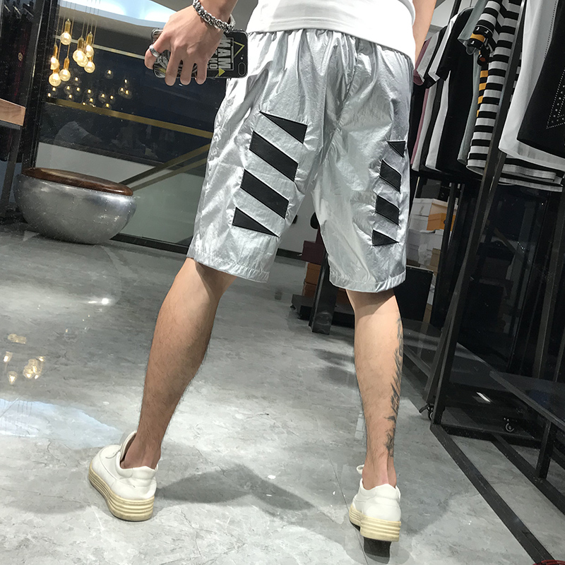 European station summer men's personality tide brand handsome ins net red silver shiny casual shorts men's beach pants tide