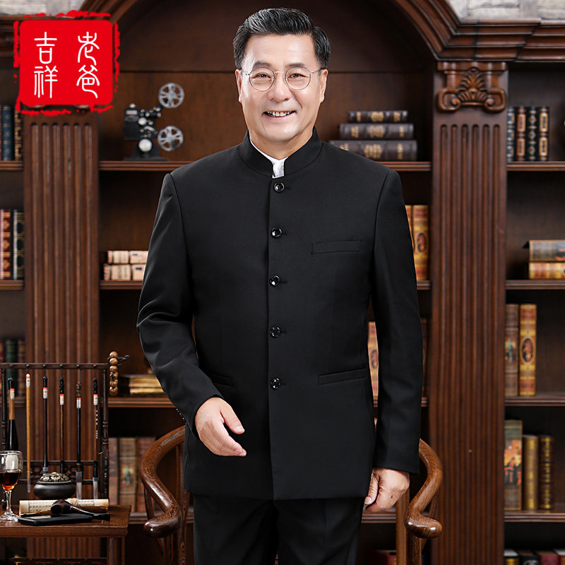 Spring and autumn stand collar tunic men's middle-aged men's wedding middle-aged and elderly Chinese style Republic of China men's dad suit