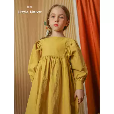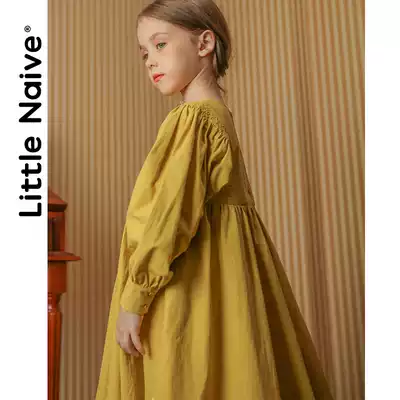 Littlenaive Girls Long-sleeved Dress Lantern Sleeve Spring and Autumn Little girl over-the-knee skirt Skirt