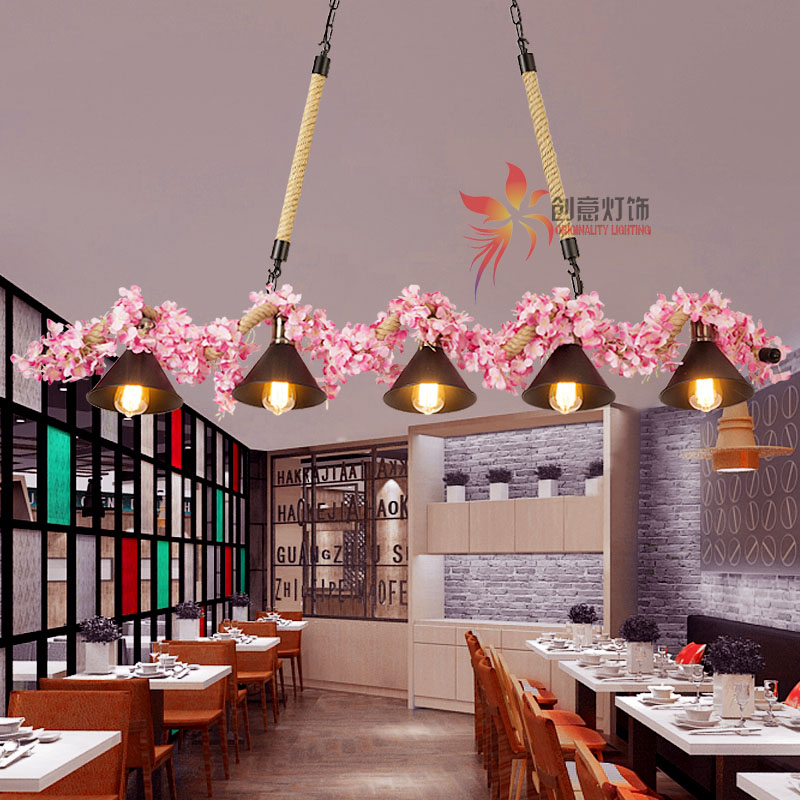 An iron art chandelie with a lamp