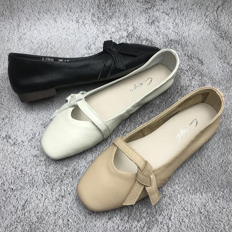 Brand clearance handling 2023 leather female sole square shallow soft solid soft - leather soft - leather shoes