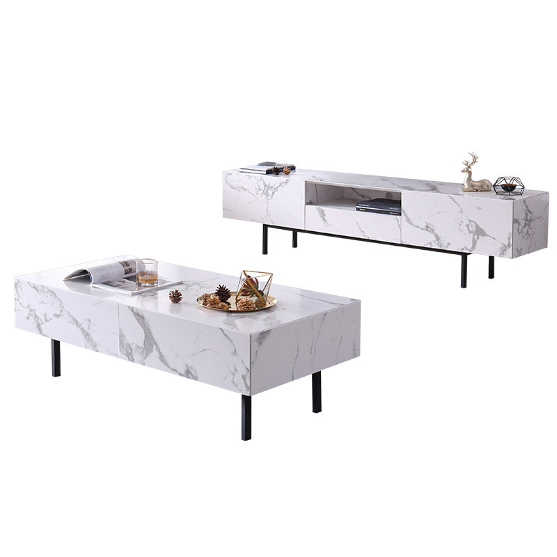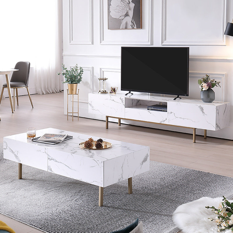 Luxurious family light and luxurious marble striped tea table TV cabinet portfolio Nordic minimalist living room full set of furniture