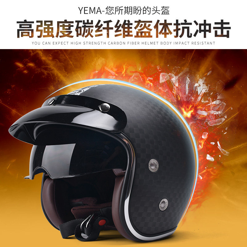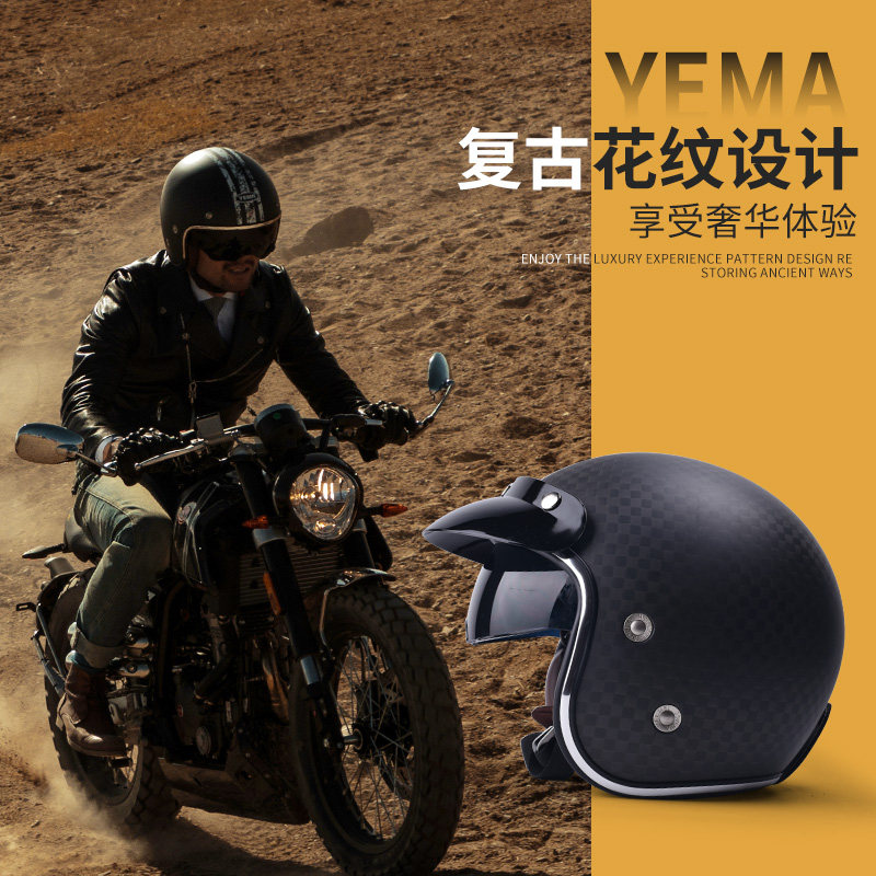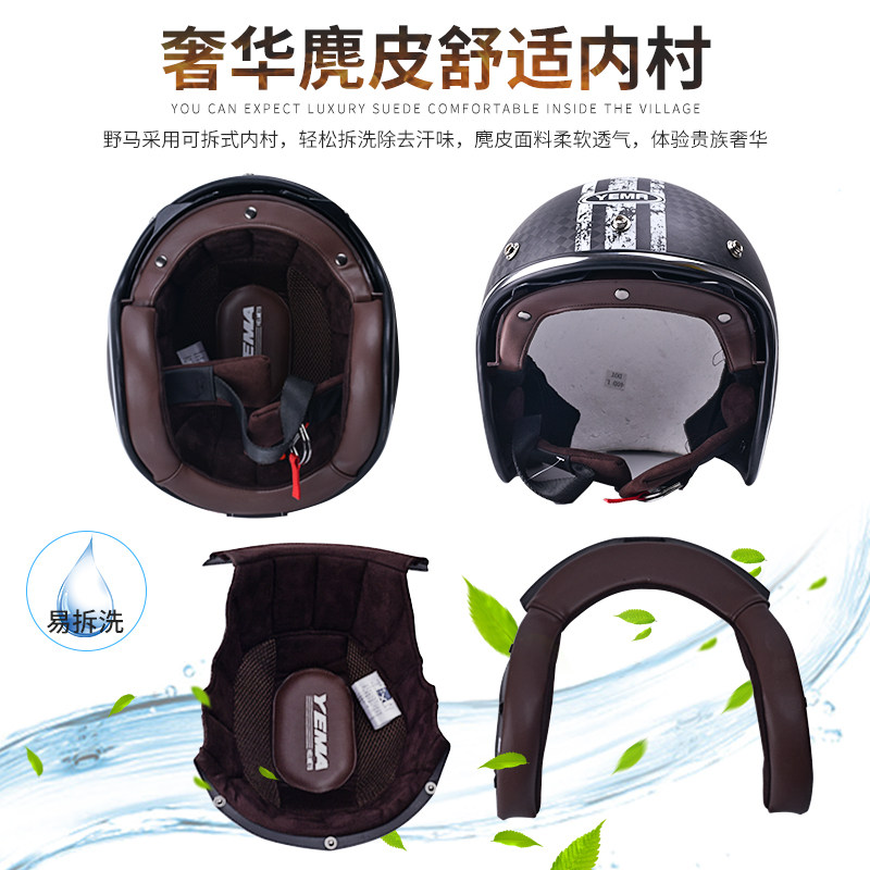 Mustang locomotive helmet men and women Four Seasons universal carbon fiber off-road helmet 3C certification retro locomotive semi-helmet
