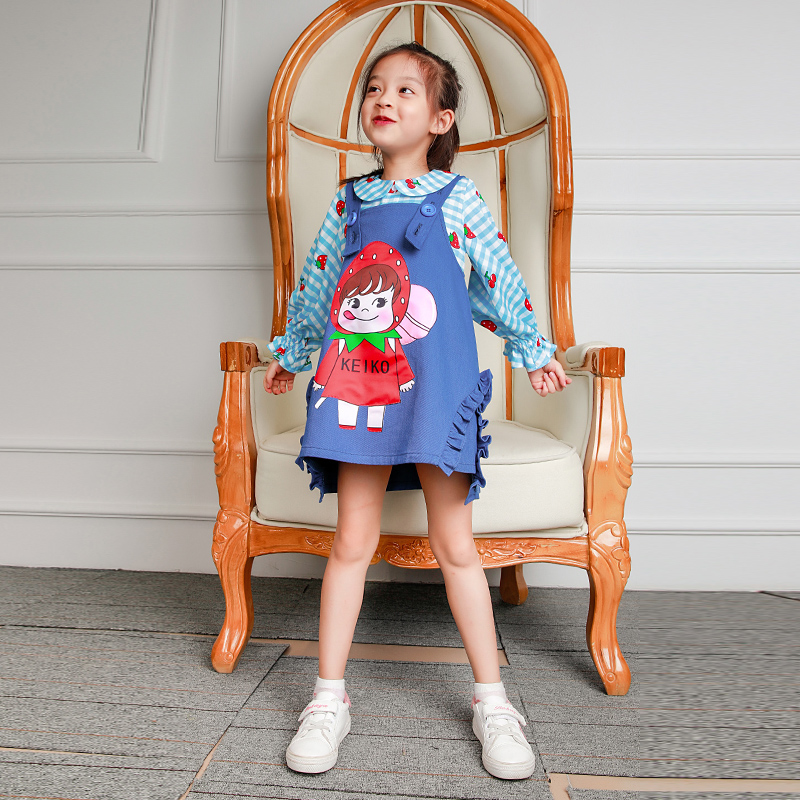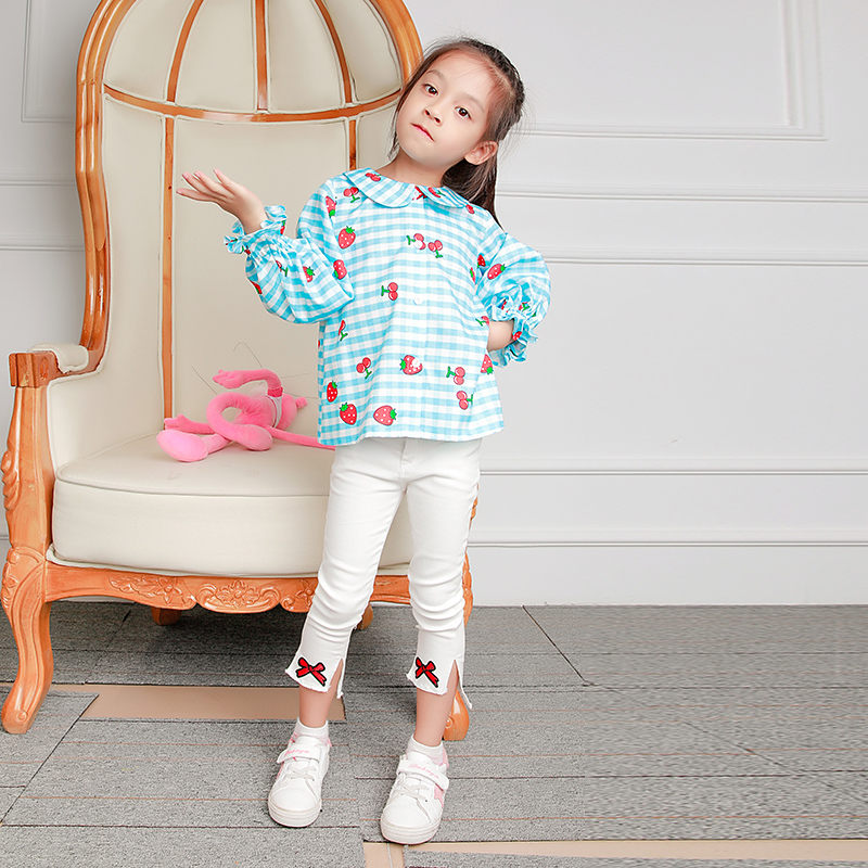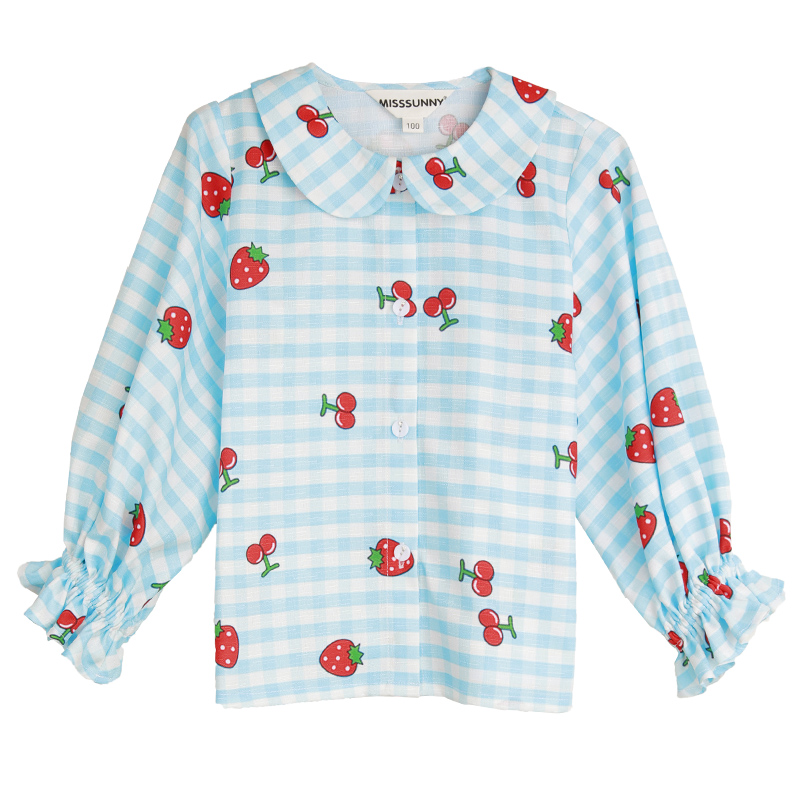 Original girls' plate shirt thin 2023 Spring new air printed children's doll collar shirt woman