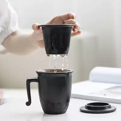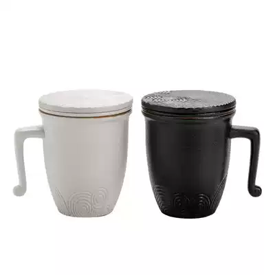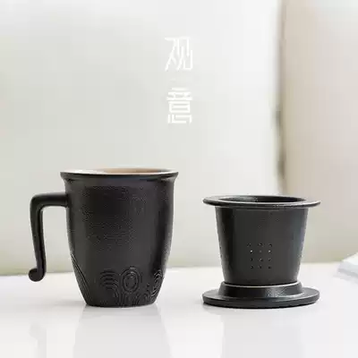Guanyi ceramic mug with lid Spoon Large capacity office tea cup Couple cup Tea water separation cup Drinking cup
