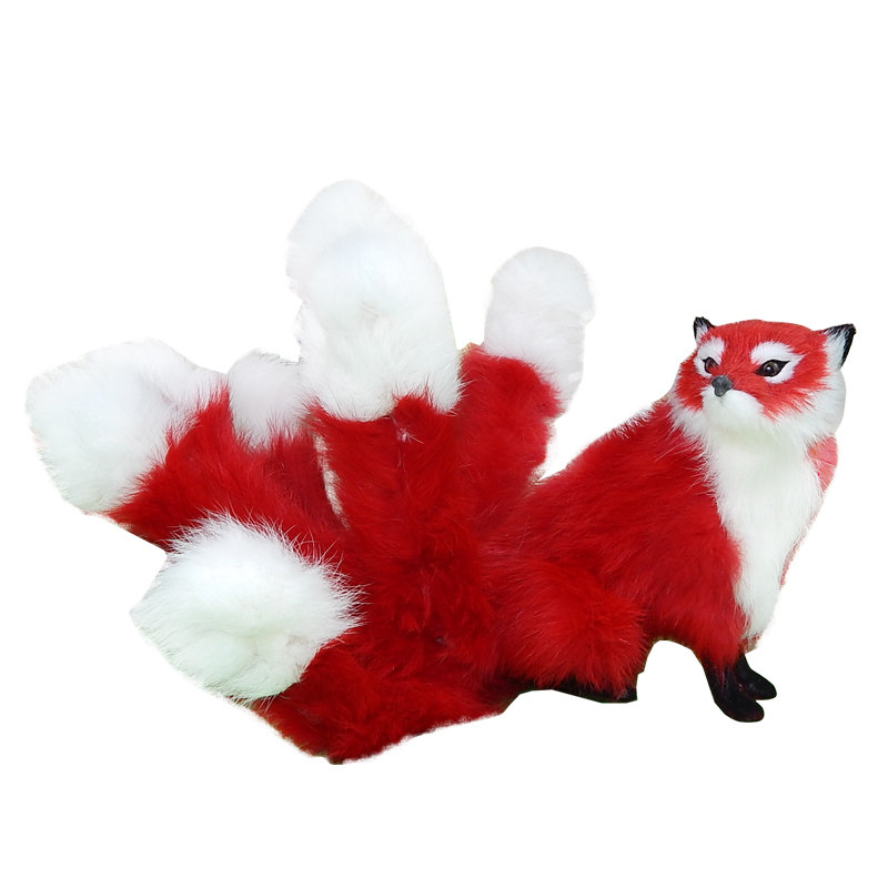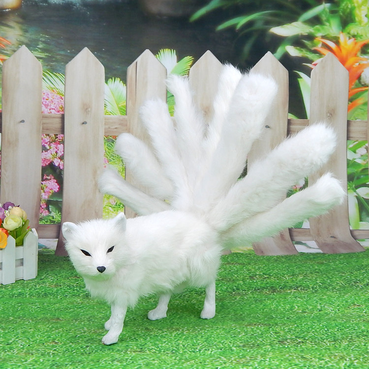 Simulation Nine-Tailed Fox Model Emulation Fox Doll Nine-Tailed Fox Wool Suede Toy Paparazzi And White Fox Decorative Props