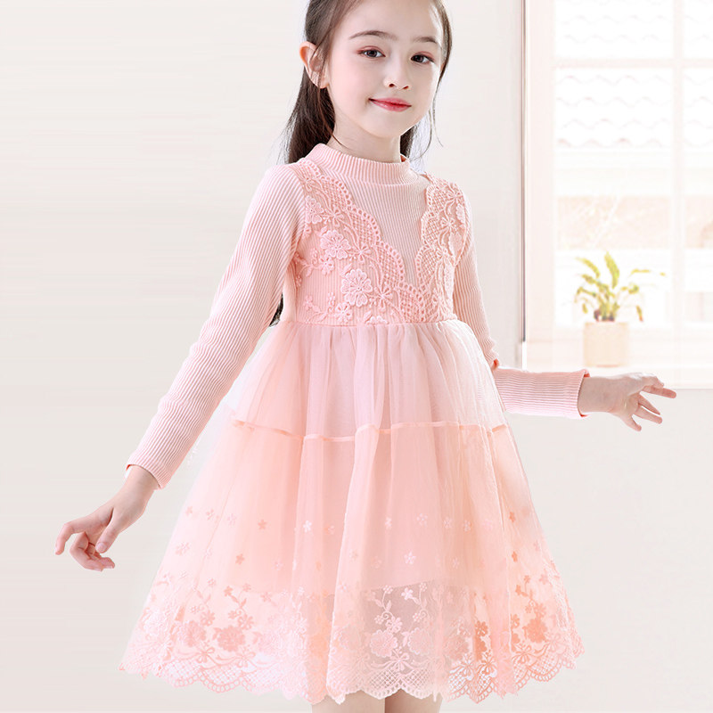 Girls dress Children's spring and autumn new skirt Girls spring long-sleeved yarn dress Big child Foreign school base princess dress