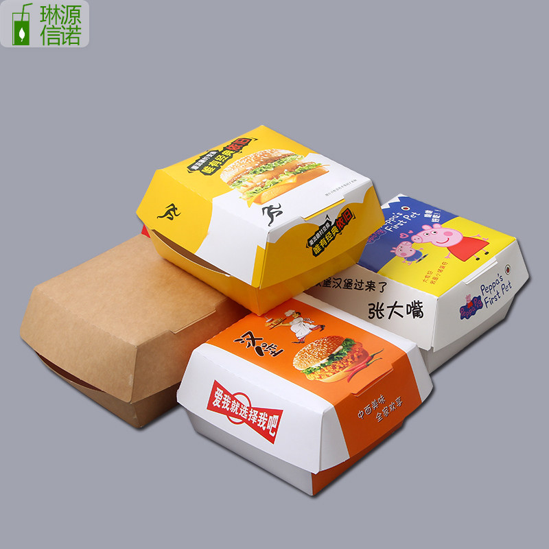 Disposable folding free hamburger box packaging carton baked food packaging french fries box chicken rice flower boat box 100