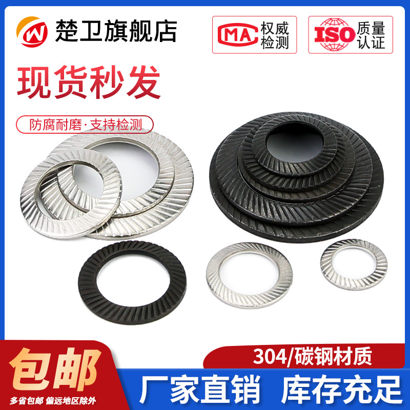 304 Locking Spacer Stainless Steel Anti-Loose Washer Hair Black Bifacial Teeth Butterfly-shaped anti-slip mat M3-M36 DIN9250