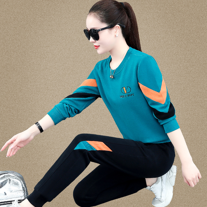 2022 Spring Autumn Season New Foreign Pie Sports Suit Women Han Edition Autumn Winter Sweatpants Loose and Lean Casual Clothing Cotton