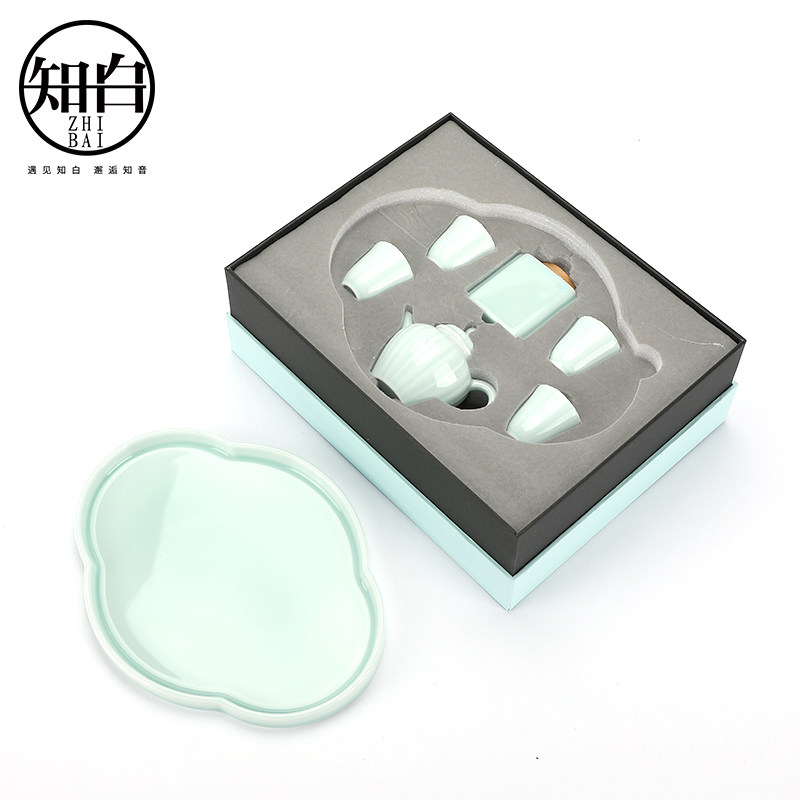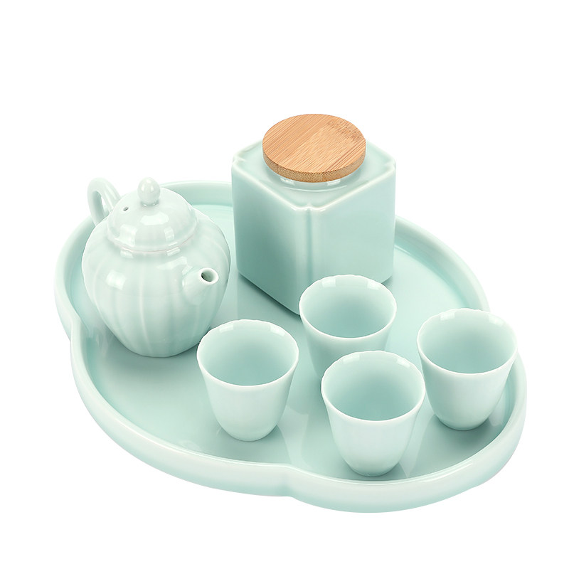 Whole set of ceramic utiliti tea furniture sets for home minimalist office day style one-pot four cups tea tray tea leaf jar gift box