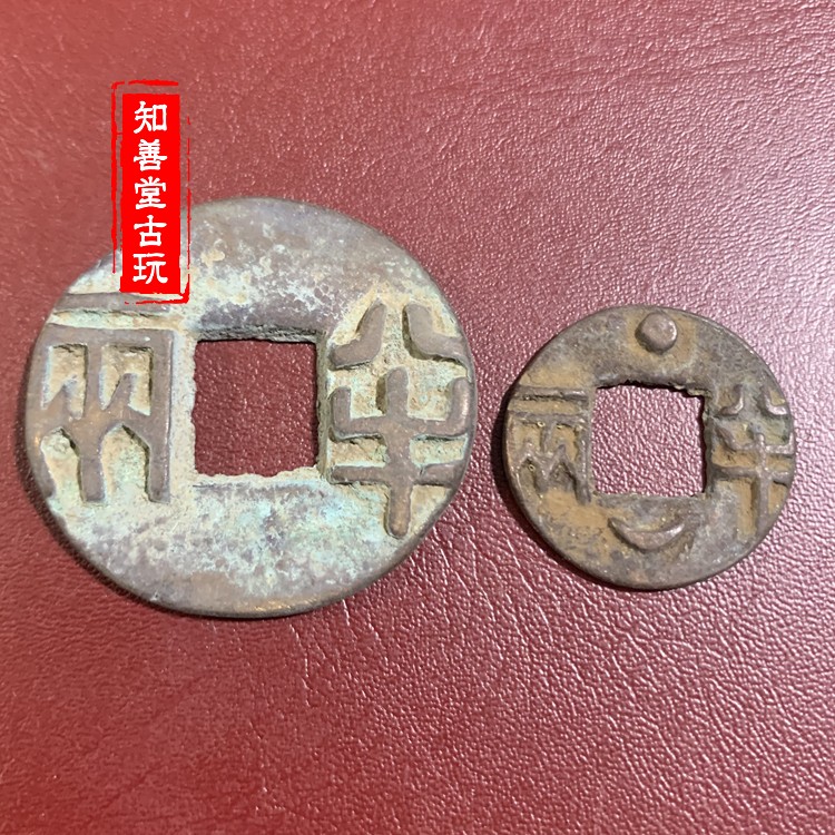 Antique copper coin Qin half or two Copper coin Copper coin square coin small half or two