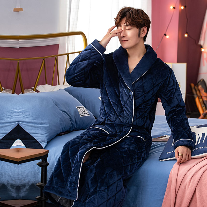 New flannel men's cotton pajamas thickened coral tufter bathrobes and long home clothes men's dresses