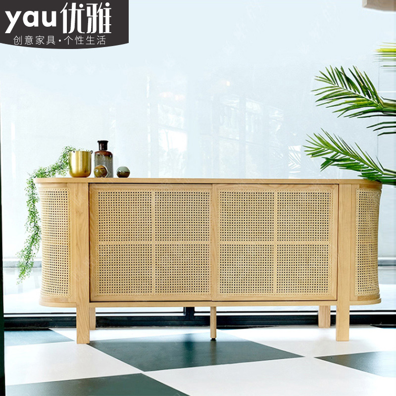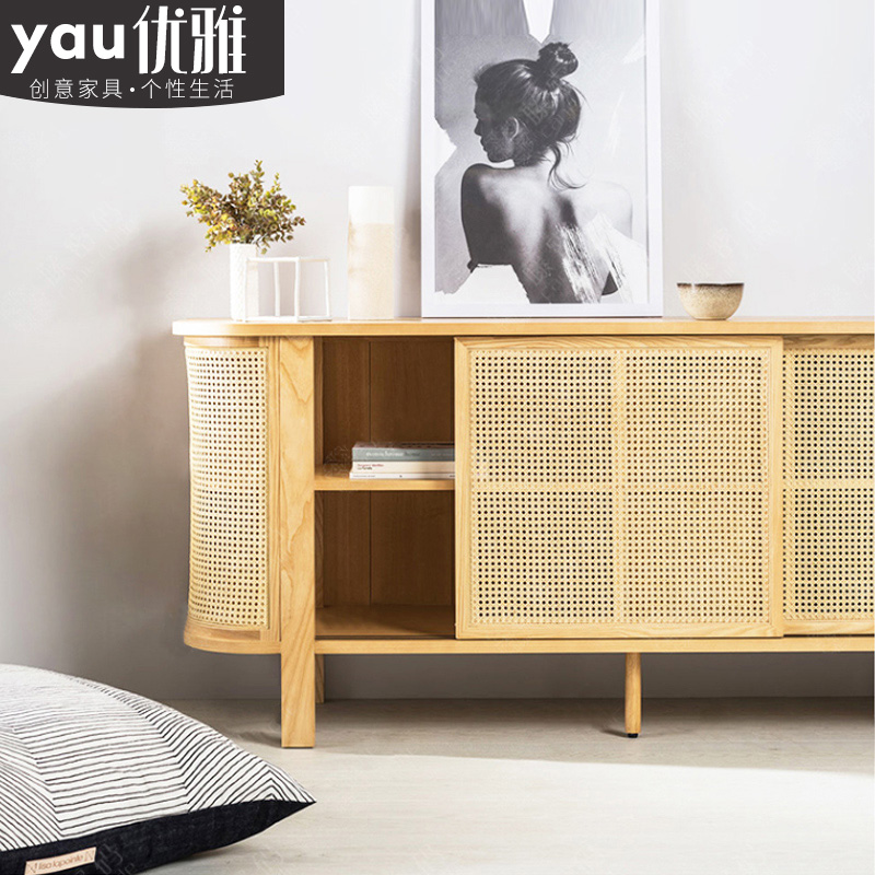 Nordic rattan dining cabinet Jane European retro hollow storage cabinet French creative TV cabinet homestay rattan furniture