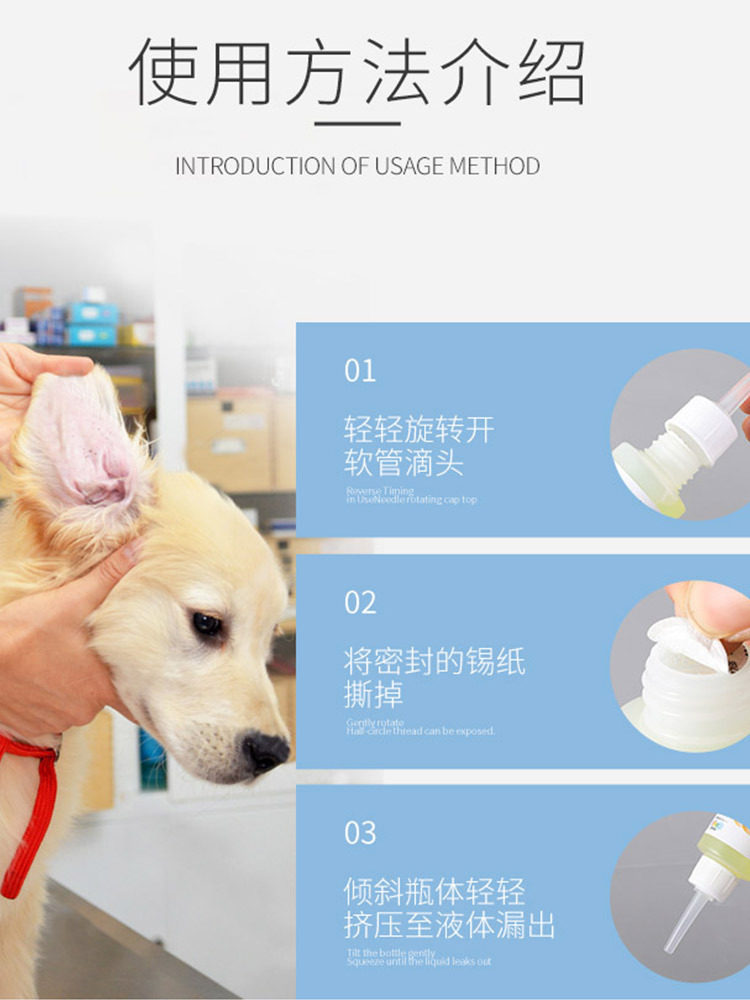 New pet Zhikang ear drops non-irritating dog ear wash water cat remove ear mites anti-inflammatory pet cleaning supplies