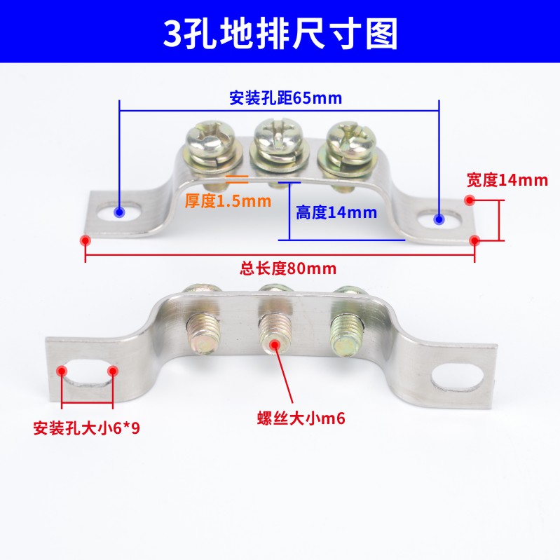 Three ground row pure copper 3 holes 2*15 zero ground row ground row machine room power distribution box complete set of ground wire terminal copper row